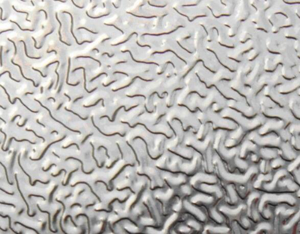 3、橘皮鋁合金花紋板材分為:經(jīng)典橘皮花紋鋁板,變異桔皮花紋鋁板(又稱為蟲子紋).其表面呈現(xiàn)出類似于桔子皮花紋,所以又可以稱為橘皮花紋鋁板.是冰箱,空調(diào)以及包裝常用的花紋系列產(chǎn)品.