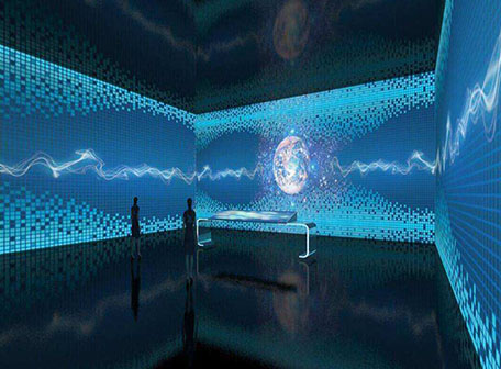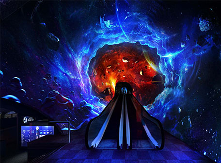 采用多通道融合方案,利用多臺投影畫面拼接,打造出動態(tài)版虛擬場景讓人有身臨其境的感覺。