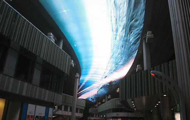 投影天幕系統(tǒng)一般使用多臺投影儀投影畫面,然后通過晟跡的投影融合技術(shù)無縫拼接畫面,伴隨立體聲環(huán)繞聲,讓人感覺自己就在現(xiàn)場,具有身臨其境的感覺。當(dāng)然,全息天幕投影也可以用發(fā)光二極管屏幕代替投影屏幕作為播放載體,但對安裝環(huán)境的要求相對較高。