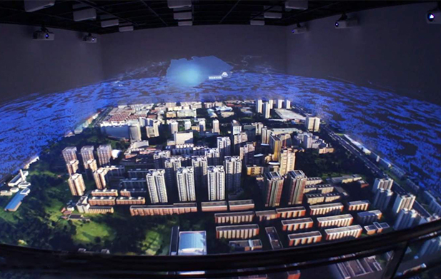 三折幕投影系統(tǒng)是由三個投影屏幕組合而成的具有環(huán)繞感的大顯示表面。與普通投影系統(tǒng)相比,其顯示效果更具沖擊力和沉浸感。它使人們充分認(rèn)識到投射的魅力。三維視覺技術(shù)和投影顯示技術(shù)相結(jié)合創(chuàng)造的夢幻般的動態(tài)體驗適用于各種展廳。